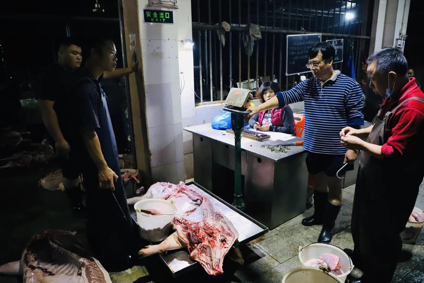 “戴好手套口罩,穿好膠鞋,進場前做好消毒沖水!豬肉分拆處理干凈就趕緊裝車,后面兄弟單位還在排隊,快快快!”凌晨兩點多,茂名濱海發展集團下屬子公司爵山食品公司燈火通明,屠宰工、清洗工數十余人已在緊張有序地開展生豬屠宰一線生產工作。