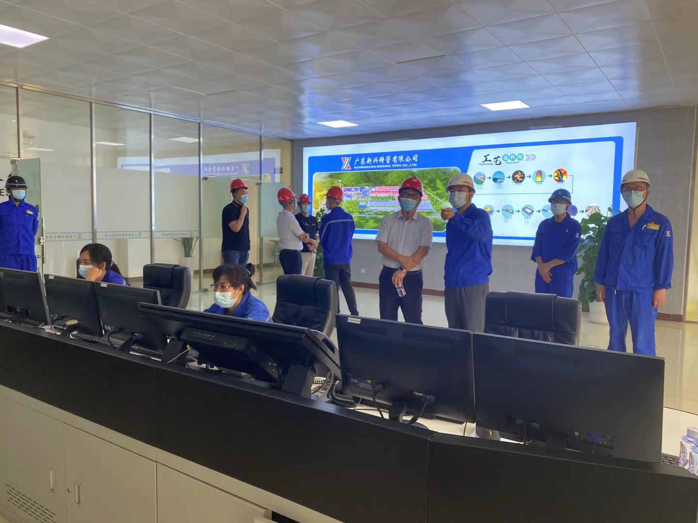 黃遠維一行深入鑄管生產車間,詳細了解鋼管生產的全過程,認真聽取了廣東新興鑄管有限公司相關負責同志對供水鑄管的安全生產、技改投入、管材供應等方面的情況介紹。