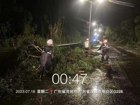 “大家做好安全措施,立即前往228國道做好道路排險工作。”集團道路養護負責人,迅速組織養護人員連夜頂風“逆行”,冒雨出動,迅速開展清障保通工作,以最快速度對倒扶、斷枝、傾斜等樹木進行清理,保障養護路段交通安全、有序、暢通。