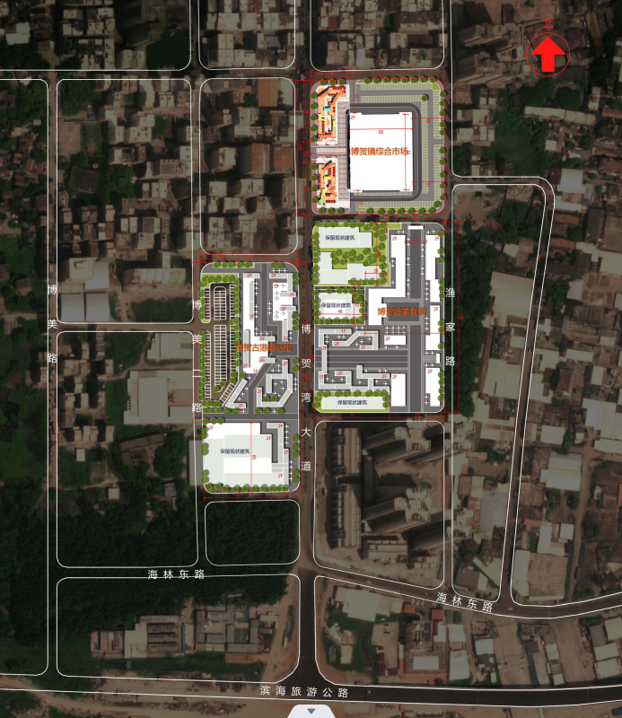 (三)博賀鎮(zhèn)美麗圩街,規(guī)劃總用地面積約52065.82㎡(約78.1畝),規(guī)劃有博賀鎮(zhèn)綜合市場周邊道路硬底化、瀝青攤鋪人行道鋪設(shè)綠化等美化提升、博賀圩美食街以及公園、道路風(fēng)貌提升、翠湖路雨污管網(wǎng)、道路建設(shè)等。總建筑面積2784.75㎡。見附圖。
