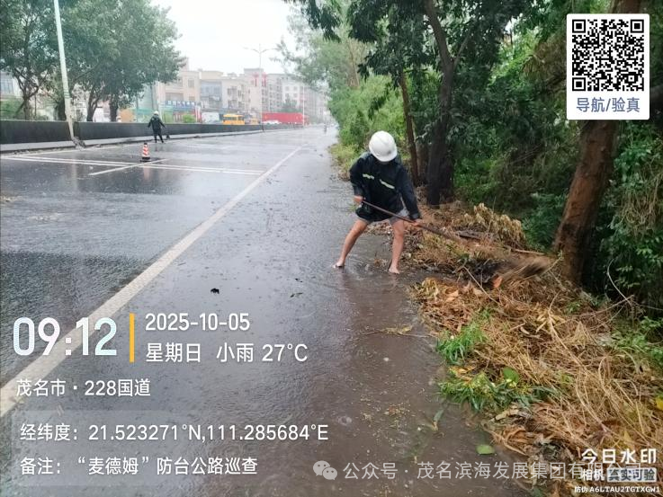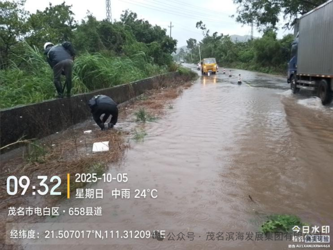與此同時,養護中心搶險隊優化力量配置,采取“兵分兩路”工作模式,對茂名港大道、S291省道、轄區國道及X848縣道等展開全域巡查,及時發現并疏通積水點,協同清理國道沿線倒伏樹木,快速消除多處道路安全隱患,保障了道路基礎通行條件。